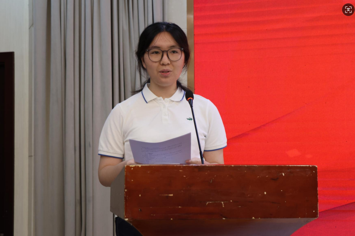 参赛学校指导老师梅娟在发言中对大赛举办的成果进行了高度评价,分享了组织参赛对于促进语文教学的重要作用。她说,比赛总有输赢,但文字没有终点,也许现在你们的文字还带着稚气,就像湖里刚冒尖的新荷,但请相信,每一次提笔都是扎根,每一次比赛都是拔节。若干年后,当你们回望此刻——溱湖的风、笔尖的汗、老师的指导、同伴的笑脸,都会成为生命里最珍贵的“文学基因”。