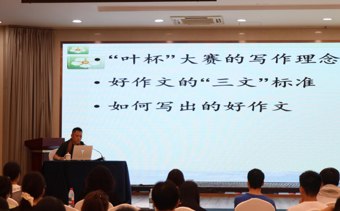 决赛开幕式后,孙道功教授以“好作文的样子”为题为参赛选手作赛前指导讲座。他说好的作文是“文风端正、文脉清晰、文气顺畅。”并从审题立意、内容素材、结构逻辑、语言表达几个方面结合例文进行了深入的分析,希望同学们都能笔下有乾坤,文中有天地。
