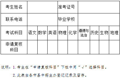 特别提醒:省中招办不直接受理考生、家长或学校的成绩复核申请。