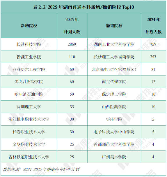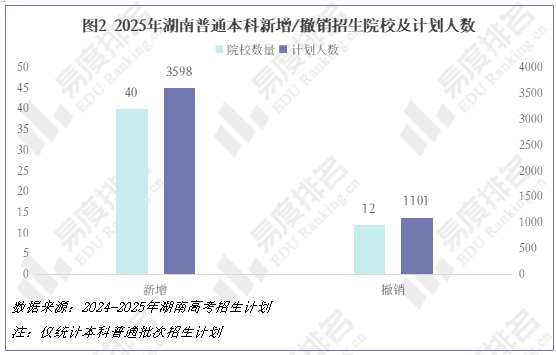 相比去年,今年新增40所高校在湖南招生,新增院校的招生计划人数达到3598人。撤销招生计划的院校有12所,这12所高校去年的招生计划1101人。