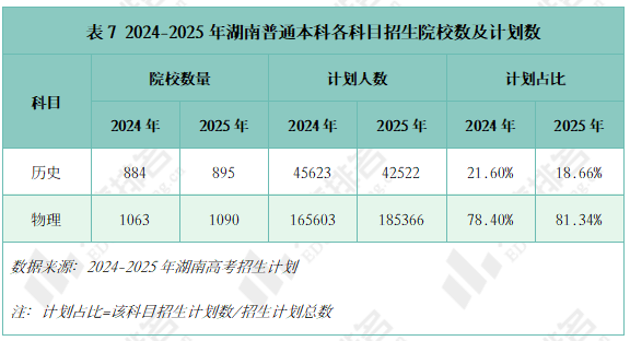 7.历史科目招生计划减少,而物理科目招生计划大幅增加