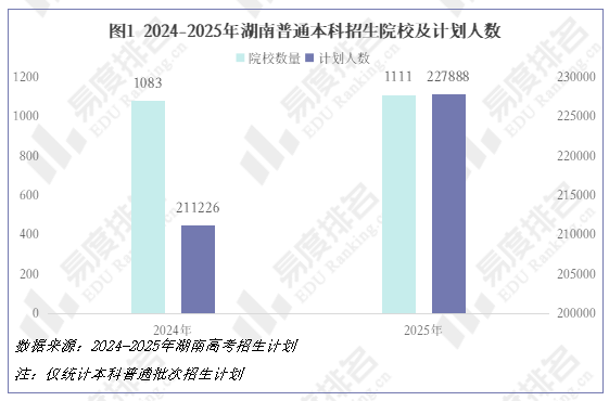 2025年高考在湖南本科普通批招生的高校达到1111所,较去年增加28所。计划招生人数达到22.8万人,较去年增长7.9%。