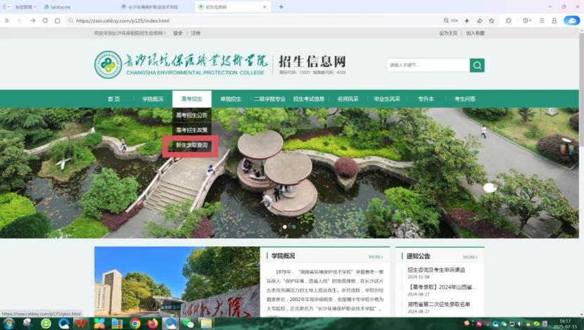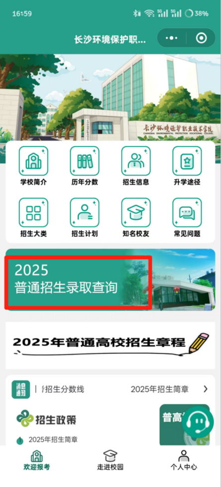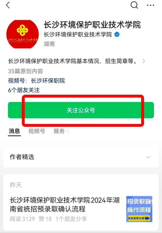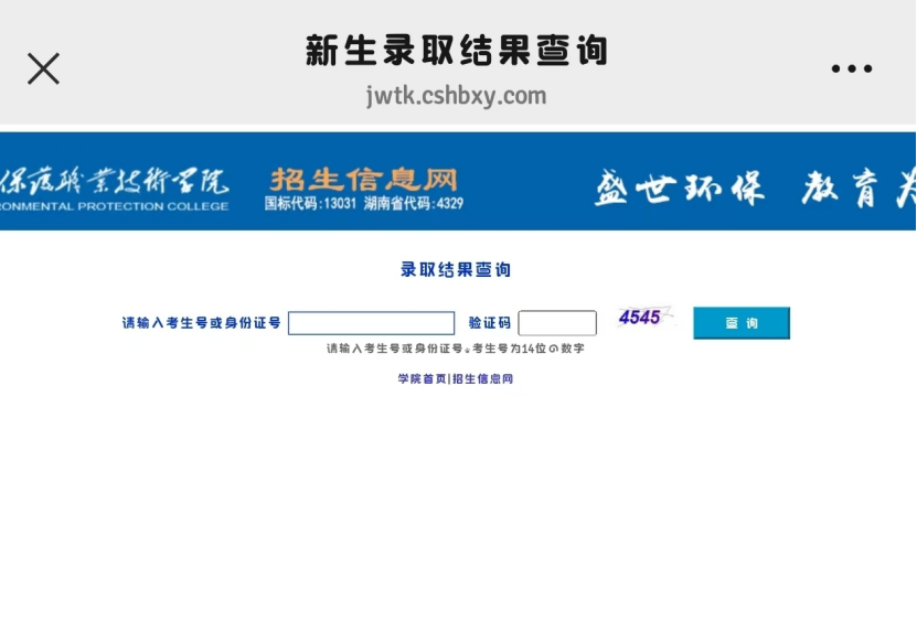 关注“长沙环境保护职业技术学院”——点击右下角高考招生、普招录取查询——输入考生号或身份证号查询录取结果。