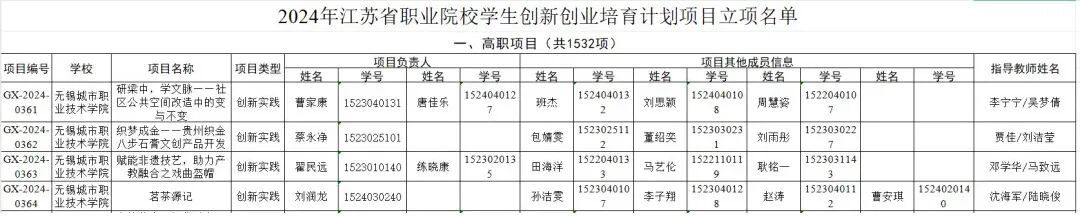 2024年江苏省职业院校学生创新创业培育计划项目立项四项
