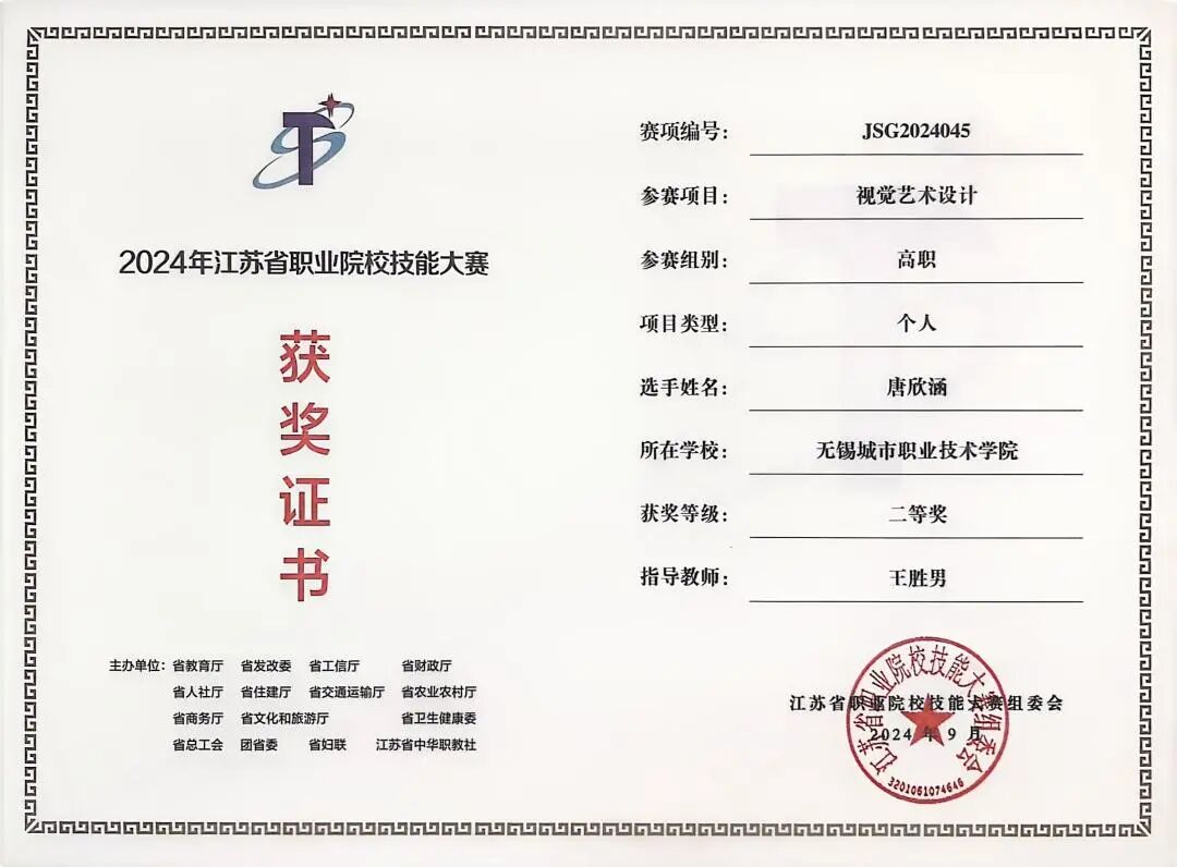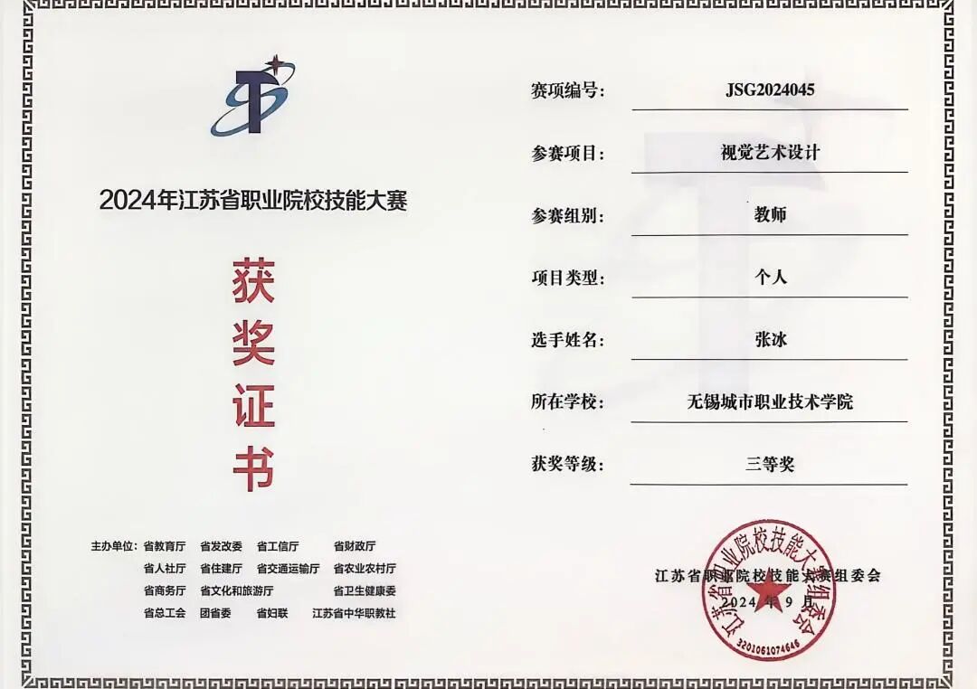 张冰老师荣获2024年度江苏省职业院校技能大赛三等奖
