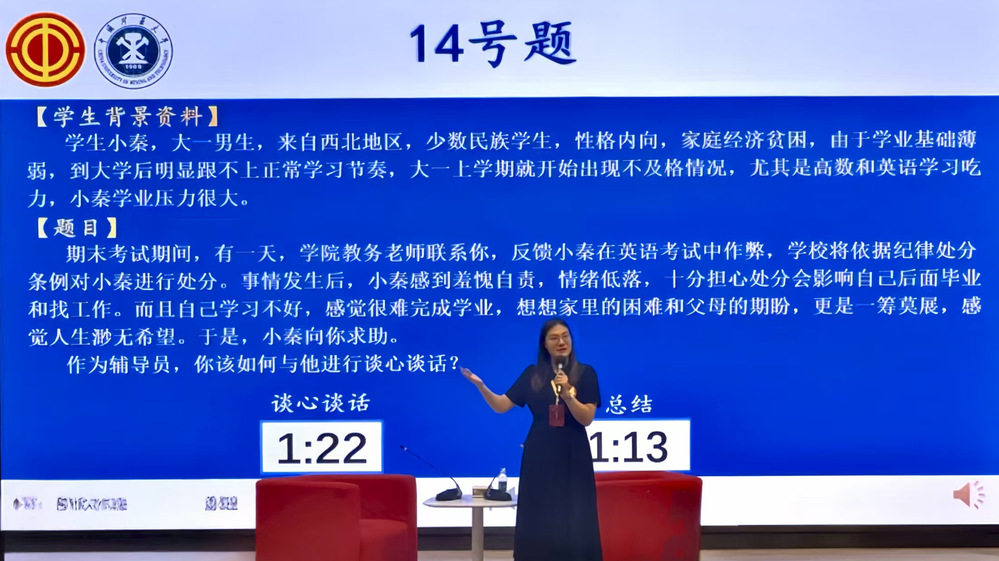 本次大赛旨在扎实推动“新时代铸魂育人工程”,促进驻徐高(职)校辅导员素质能力提升,支撑高校思想政治工作高质量发展,助力教育强市建设。全市14所高校共推荐18人参加决赛,决赛流程分为基础知识测试、现场访谈、案例分析三个部分。最终评定一等奖3名,二等奖5名,三等奖10名。