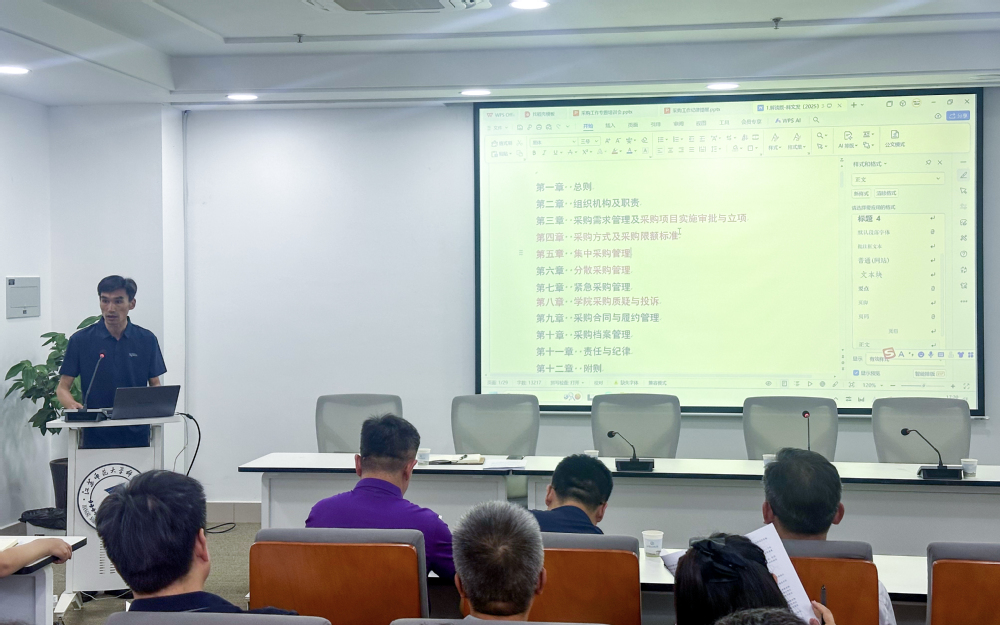 副院长张春海全面解读了新修订的《江苏师范大学科文学院采购管理办法(2025年修订)》。集中采购中心主任吕品飞解读了新制定的《江苏师范大学科文学院采购人代表管理办法(试行)》《江苏师范大学科文学院采购评审专家管理办法(试行)》《江苏师范大学科文学院采购代理机构管理办法(试行)》,并对采购评审工作注意事项作提醒,同时布置了采购评审专家遴选工作。