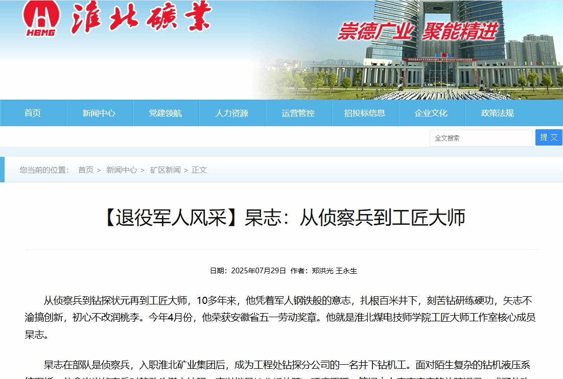 从侦察兵到钻探状元再到工匠大师,10多年来,他凭着军人钢铁般的意志,扎根百米井下,刻苦钻研练硬功,矢志不渝搞创新,初心不改润桃李。今年4月份,他荣获安徽省五一劳动奖章。他就是淮北煤电技师学院工匠大师工作室核心成员杲志。