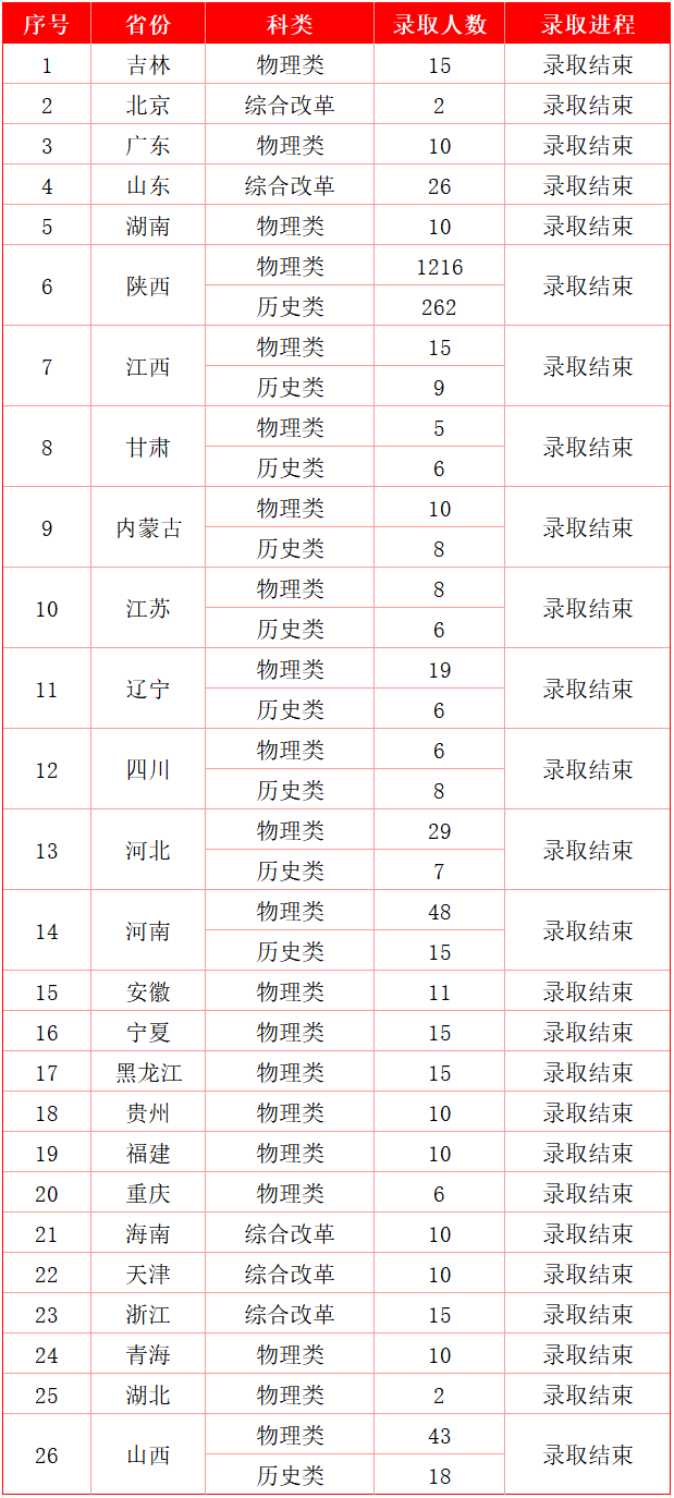 西安建筑科技大学华清学院2025年本科招生录取工作正在进行中。截至8月2日,湖北、山西等26个省份的普通类录取工作现已结束,详情请见下表: