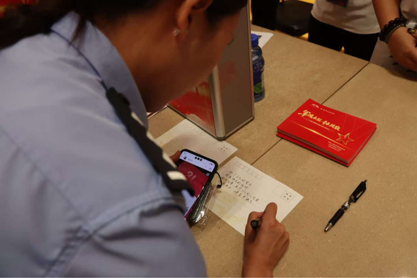 签名墙旁边【致老兵】【致现役军人】【致未来军人】三个主题信箱前更是排起了长队。游客们纷纷拿起明信片,写下最真挚的话语:“您守护过的山河,如今国泰民安”“风雪里的岗哨,是我们最安心的坐标”“作为中华民族的儿女,我辈当自强!”观众何先生将手写的寄语郑重投入“三封家书”时空留言信箱,话语间满是感慨:“只有国家强大,我们才能过上幸福平安的生活。我定会带着儿孙再来,让他们也铭记这段历史,传承这份力量。”这些留言将被整理成册,在后续老兵回访、军人参观等活动中“隔空传递”,让敬意跨越时空延续。