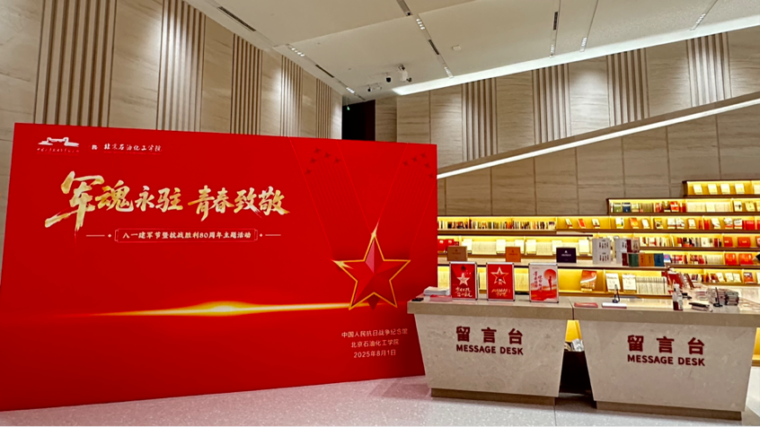 2025年8月1日,在八一建军节暨抗战胜利80周年之际,北京石油化工学院联合中国人民抗日战争纪念馆共同策划组织了“军魂永驻,青春致敬”主题活动。活动以歌曲快闪点燃观众心中的爱国火焰,以诗朗诵传递青年学子的赤子之心,更以留言信箱承载着人们对历史的缅怀与对未来的期许。来自全国各地的军人及家属、学生等观众齐聚抗战馆现场,在历史与当下的对话中,传承红色基因,致敬不朽军魂。