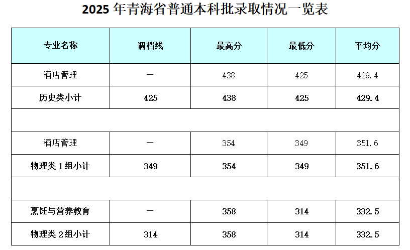 青海省普通本科批次实行平行志愿投档模式,历史类在青调档线为425分,物理类1组(不限选考)在青调档线为349分,物理类2组(选考生物)在青调档线为314分。(详见“2025年青海省普通本科批次录取情况一览表”)