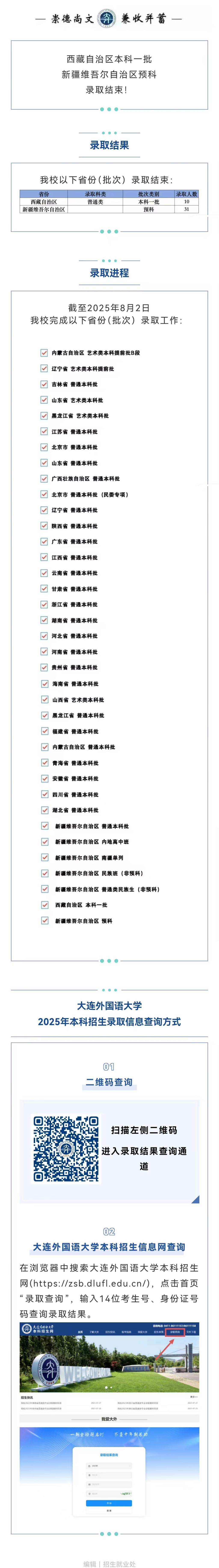 大连外国语大学2025年本科招生录取进度十四:8月2日西藏自治区本科一批、新疆维吾尔自治区预科录取结束!