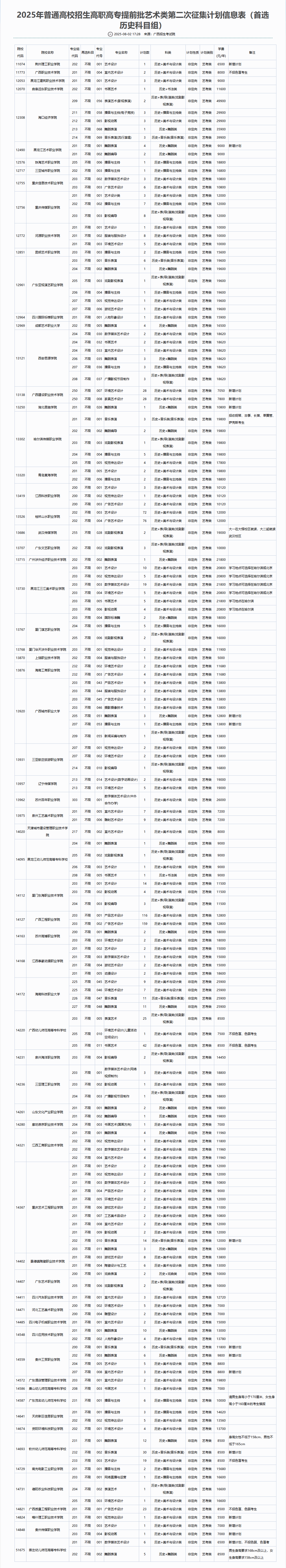 高考丨2025年高职高专提前批艺术类院校专业组第二次征集投档最低分数线(首选历史科目组)