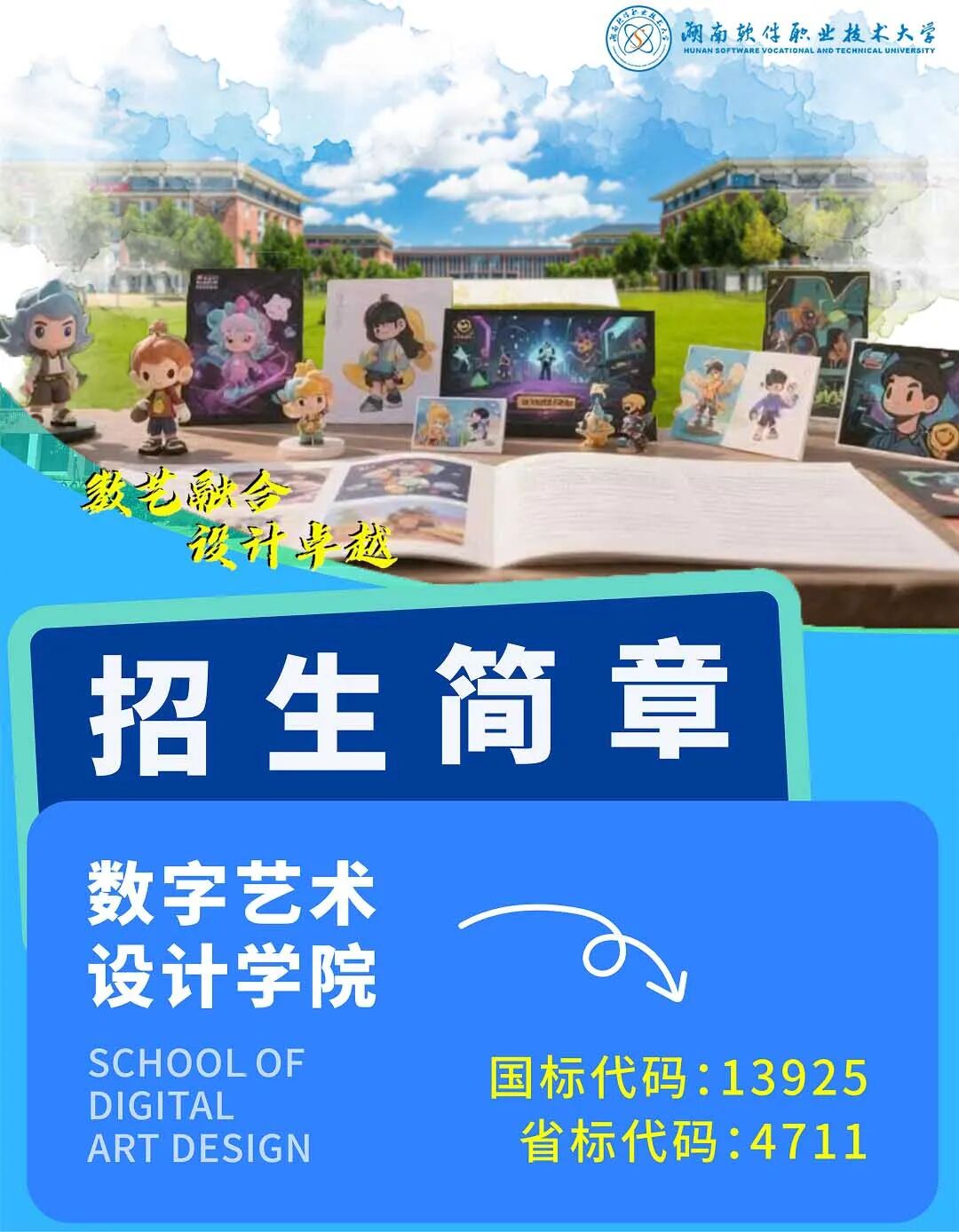 数字艺术设计学院始于2006年艺术设计系,2016年依托现代设计制作湖南省高职示范性特色专业群成立现代设计学院, 2025年学院正式更名为数字艺术设计学院,专注于数字科技、艺术与设计的结合,构建以数字科技与创意设计并重的特色专业集群,紧密对接湖南省“三高四新”战略与湖南省高校“两优方案”策略,围绕数字创意产业与数字艺术设计领域开展高层次技术技能型人才培养。学院现有数字动画、数字影像设计、环境艺术设计等3个本科专业,动漫制作技术、数字媒体艺术设计、室内艺术设计、广告艺术设计、产品艺术设计等5个专科专业,其中包括1个教育部职业教育创新行动计划骨干专业与省级特色专业、1个省级高等职业教育一流特色专业群与特色示范专业群。学院还拥有中央财政支持的计算机应用与软件技术实训基地、省级职业院校生产性实习实训基地、省级技能人才培养基地。学院现有全日制本专科在校生2600余人。