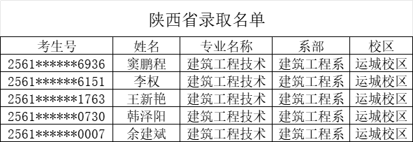 截止8月5日,我院在陕西省高职专科的招生录取工作已经顺利结束,录取通知书预计在8月中旬通过EMS发放,录取情况如下: