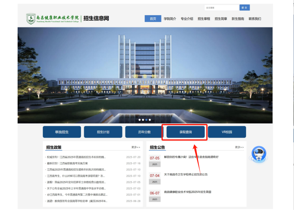 (https://www.nchvc.edu.cn/zsxxw/)进入学校招生信息网。