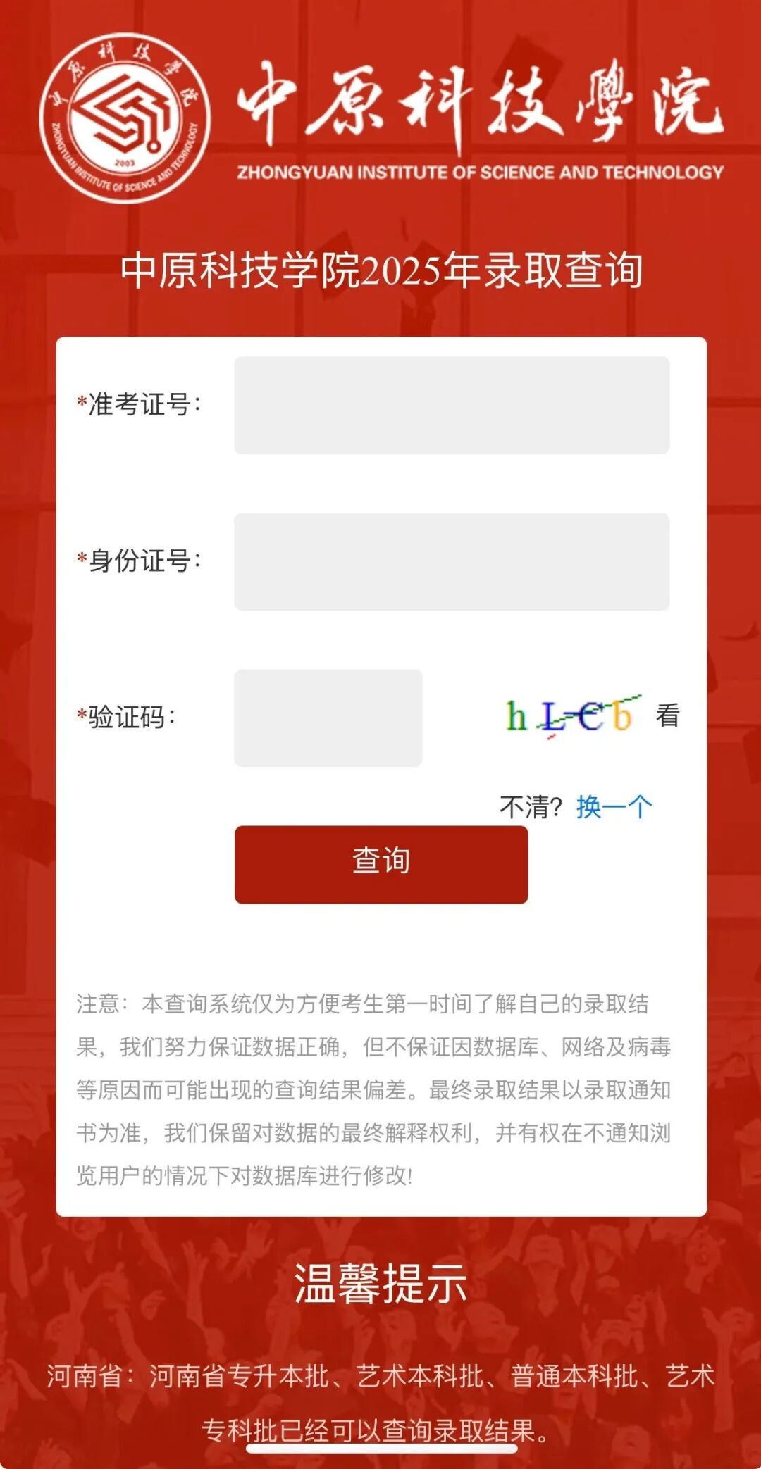 我校已圆满完成2025年河南省艺术高职(专科)批次录取工作,请报考考生及时查询录取结果,查询方式如下: