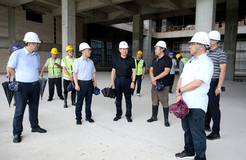 调研中,周旭一行实地察看了新图书馆(实践创新中心)建设、宿舍楼维修改造、大学生活动中心维修改造等9个项目施工现场,现场听取了各项目专题汇报,详细了解项目进度、质量管控、重点难点等情况,对暑期基建和维修工作取得的成效给予充分肯定。周旭强调,要牢记“安全第一、生命至上”的理念,面对暑期以来出现的连续高温、台风等恶劣天气,进一步强化安全意识,完善施工应急预案,确保各个项目安全文明有序施工。要加强统筹协调,在保障施工安全和质量的前提下,倒排工期、挂图作战、高效推进,确保项目按期完工,为新学期教育教学提供良好的条件保障。