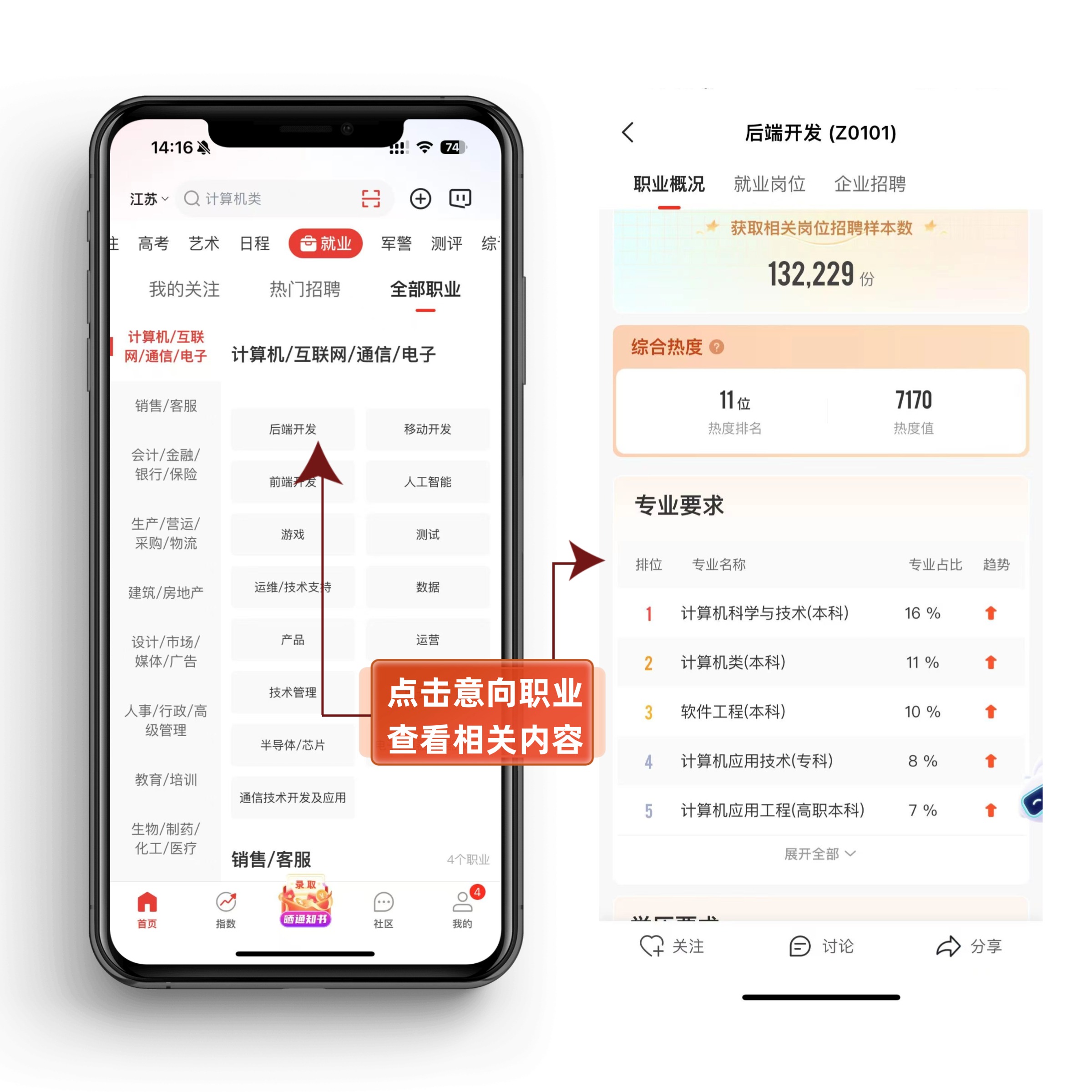 如果想提前了解意向岗位的相关信息,可在优志愿【就业】专栏中点击意向职业,即可查看该岗位的相关情况,涵盖专业要求、学历门槛、就业岗位类型以及企业招聘信息等具体内容。