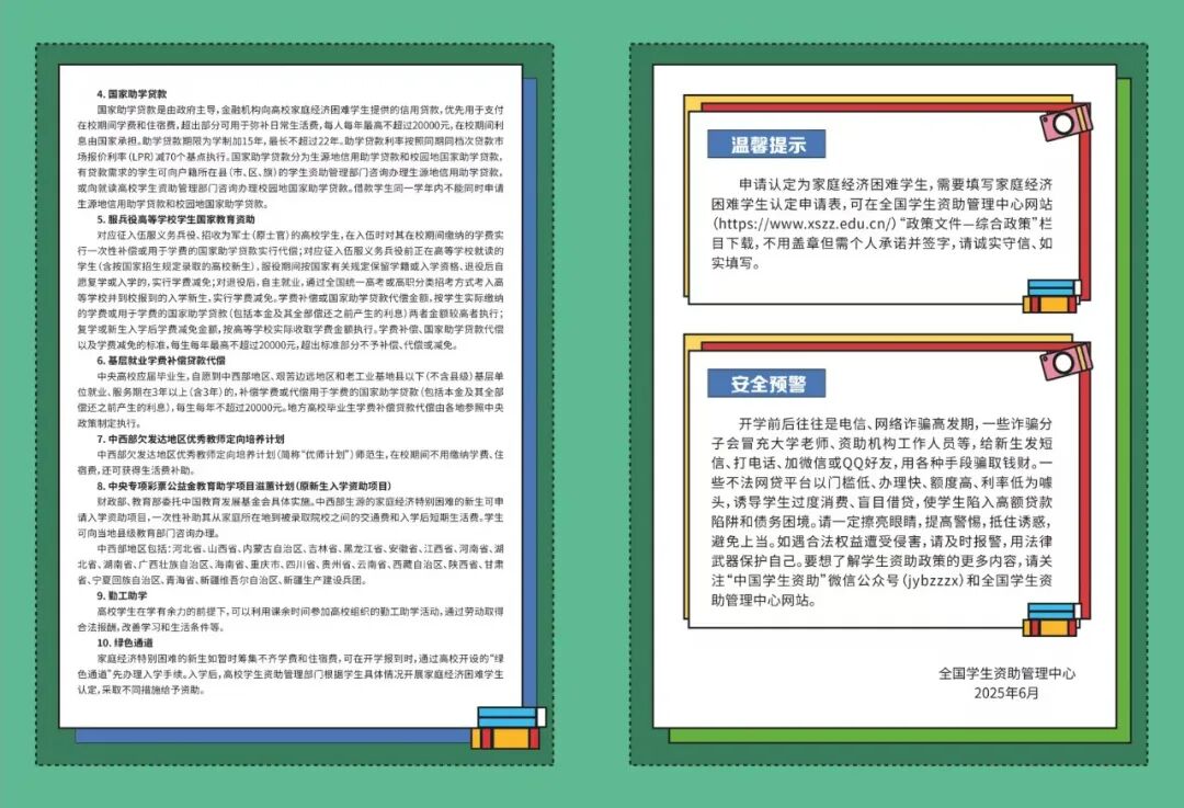 新生如需申请家庭经济困难认定,需填写《新疆师范大学家庭经济困难学生认定申请表》(随录取通知书同时寄发,或入校后在学院辅导员处领取填写),入学报到时交所在学院辅导员。如为建档立卡、低保、残疾学生等,请携带建档立卡证复印件、低保证复印件、残疾证复印件等。已办理生源地信用助学贷款的新生,在入学报到时请携带借款合同复印件及生源地贷款受理证明在入学报到时交至学院辅导员处。