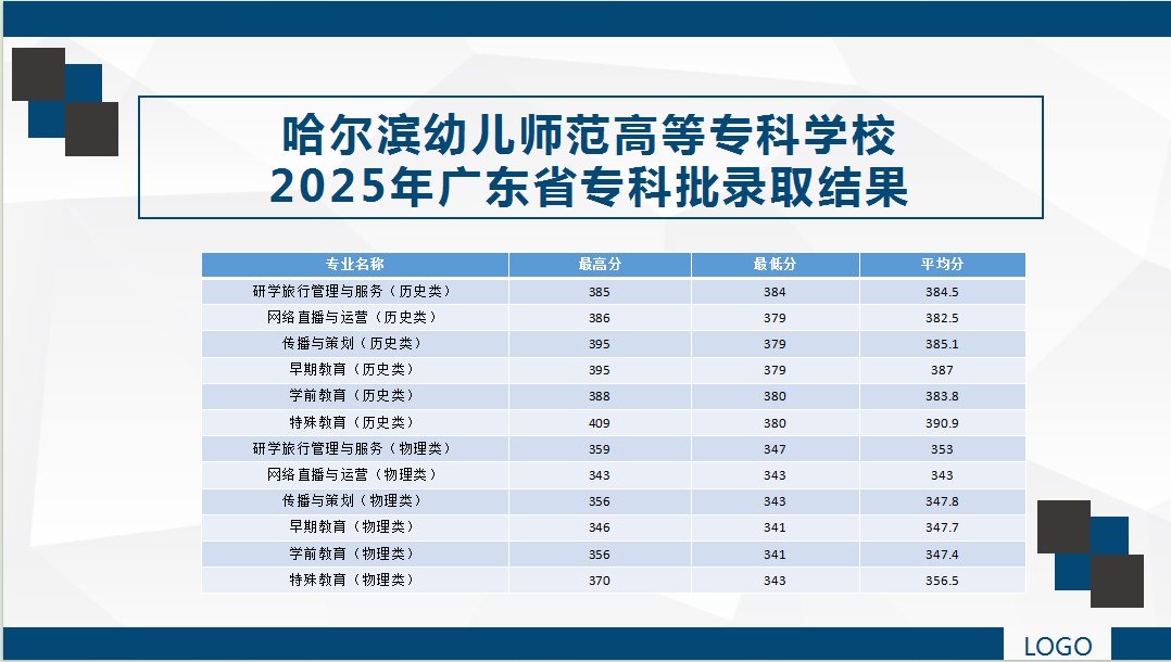 哈尔滨幼儿师范高等专科学校2025年广东省专科批录取结果