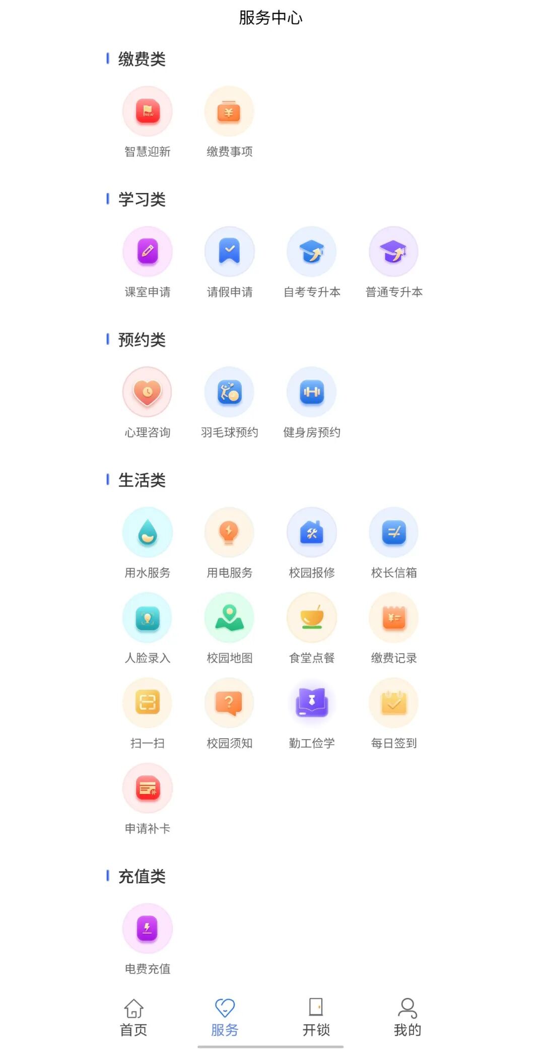 生活服务一键通:寝室开门、查宿舍电费余额、申请维修、预约羽毛球场、报修网络故障……不用跑后勤处,指尖一点就能搞定。