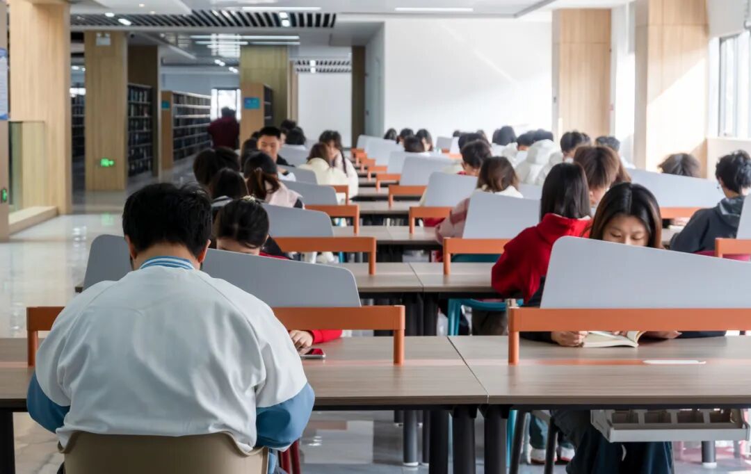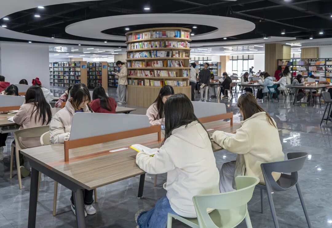 藏书丰富的图书馆里,不仅有海量专业书籍、期刊文献免费借阅,还有安静舒适的自习区,配备空调和充电插座,期末复习、小组讨论来这里准没错,免费使用!