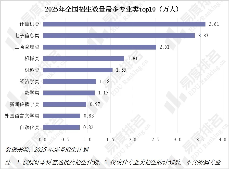 与之呼应,计算机类专业招生量也以3.6万位居专业类第一。
