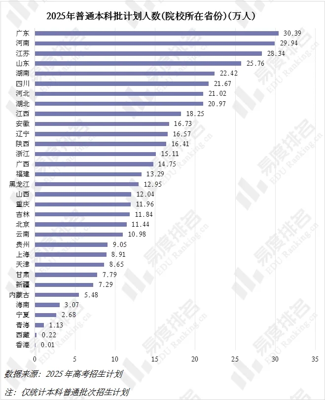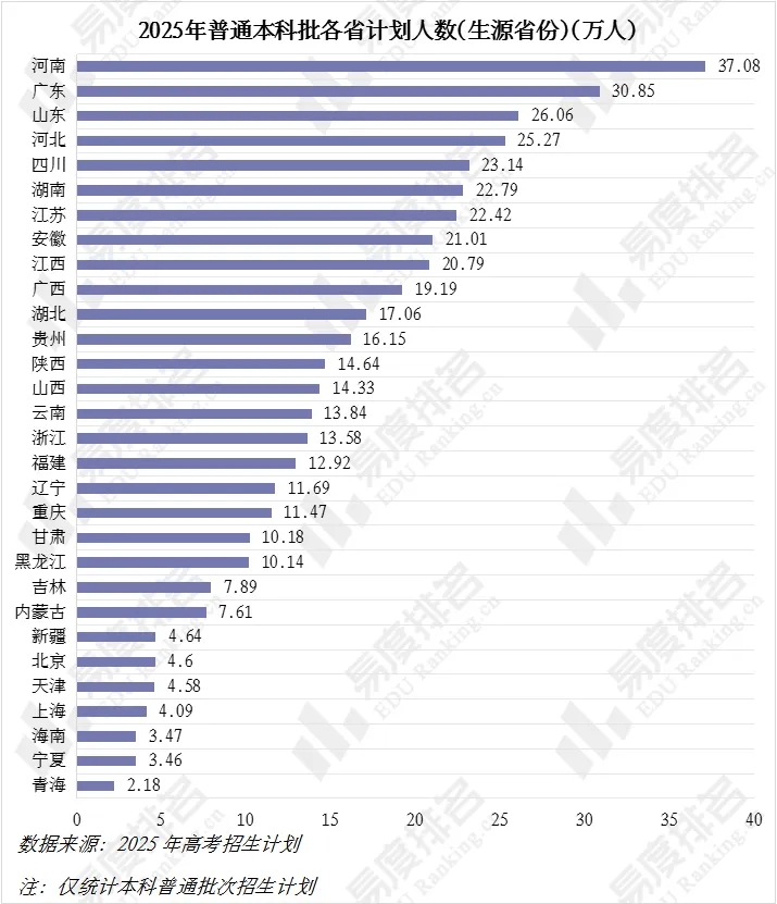 中原大地河南以37万本科招生计划高居榜首,规模相当于青海的17倍。