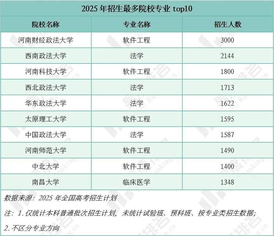 值得注意的是,河南财经政法大学软件工程专业以3000人的招生规模成为 "超级大班",这种 "专业巨无霸" 现象在地方高校中尤为突出。其背后既有地方政府对数字经济的政策倾斜,也反映出传统文科院校向应用型转型的迫切需求。但过度扩招可能导致教育质量稀释,需警惕 "宽进宽出" 带来的人才贬值风险。