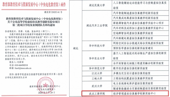 近日,教育部教育技术与资源发展中心(中央电化教育馆)公布了高等学校虚拟仿真教学创新实验室项目第二批项目学校及案例团队名单。由武汉工商学院实验教学中心主任李明教授牵头申报的“经济管理虚拟仿真教学创新实验中心”项目成功入选,为湖北省同类高校唯一获批项目。