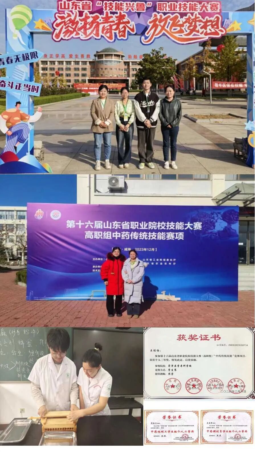 学生近三年在山东省职业院校技能大赛高职组“中药传统技能”赛二等奖1项,并入围国赛备选名单;山东省“技能兴鲁”职业技能大赛炮制学生组二等奖1项、三等奖1项;山东省“技能兴鲁”职业技能大赛调剂学生组二等奖1项。
