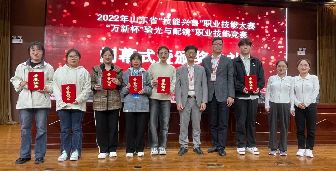 以培养高素质技术技能人才为宗旨,对接岗位能力,采用岗课赛证融通人才培养模式,强化技能培养,毕业生技能等级证书获证率100%。健全技能竞赛机制,学生在国家级和省级技能大赛中获奖33人次,获评山东省“齐鲁工匠后备人才”13人,2名学生被聘为全国及山东省大学生近视防控宣讲团成员。