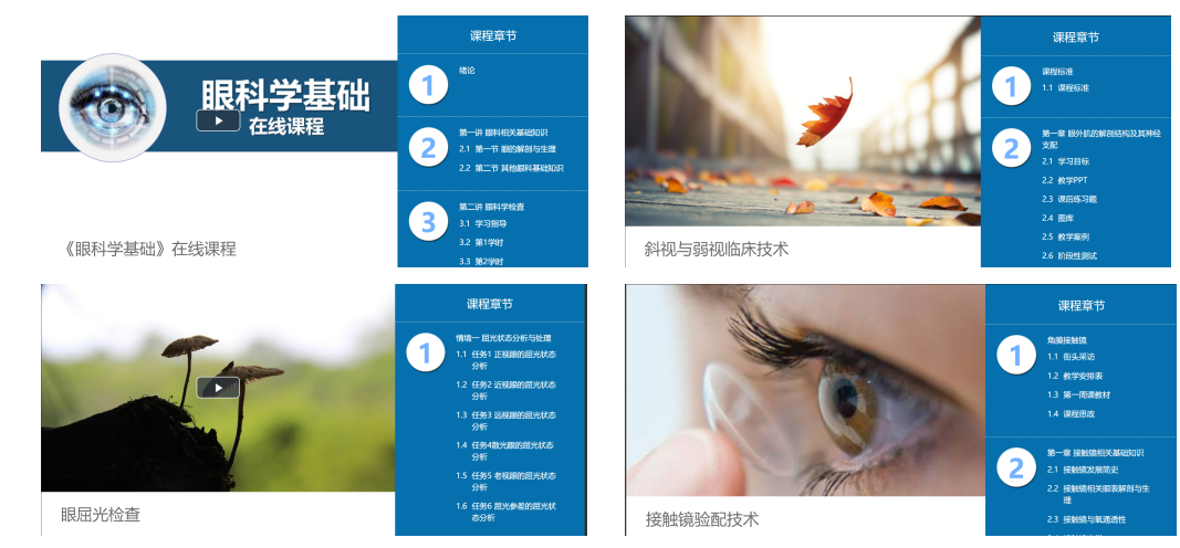 现建有山东省职业教育在线开放课程1门,山东省继续教育数字化精品课程1门,山东省社区教育优秀课程6门;主编“十四五”国家规划教材1部,工学结合教材1部;参建高职高专眼视光技术专业国家教学资源库、全国视光产教共同体和全国近视防控产教共同体;主持山东省教育教学改革课题1项、厅局级课题15项;获批实用型专利3项。
