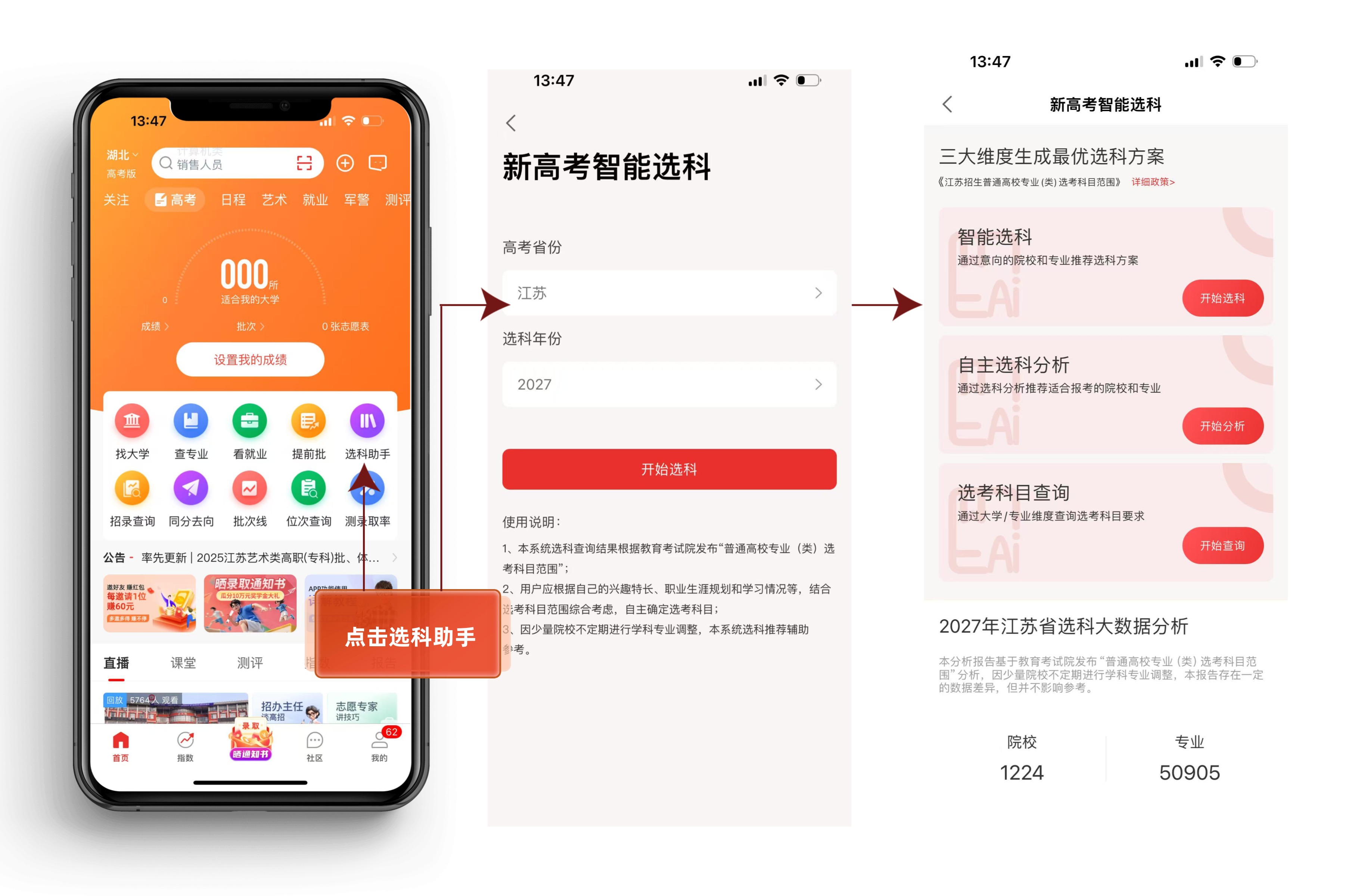 可以使用优志愿APP选科助手版块,输入考生所在省份与选科年份,即可进入选科系统,系统将从三大核心维度为考生们生成选科方案。