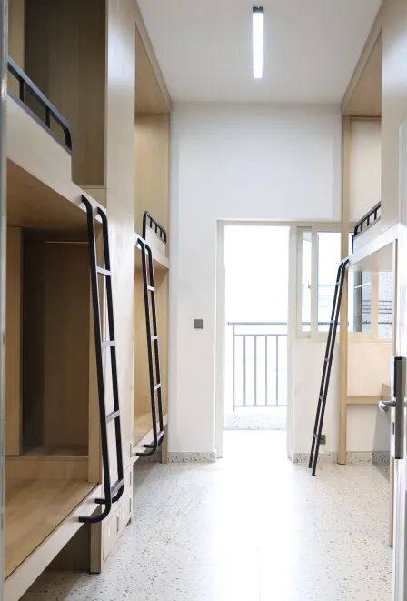 学生宿舍均为6人间的标准化大学生公寓,配备有空调、网络、书桌、书架、独立卫生间、淋浴、洗漱阳台、独立衣柜、鞋柜等。同时,宿舍各楼层还设有学生自习室、洗衣房、24小时直饮水机,条件优越。