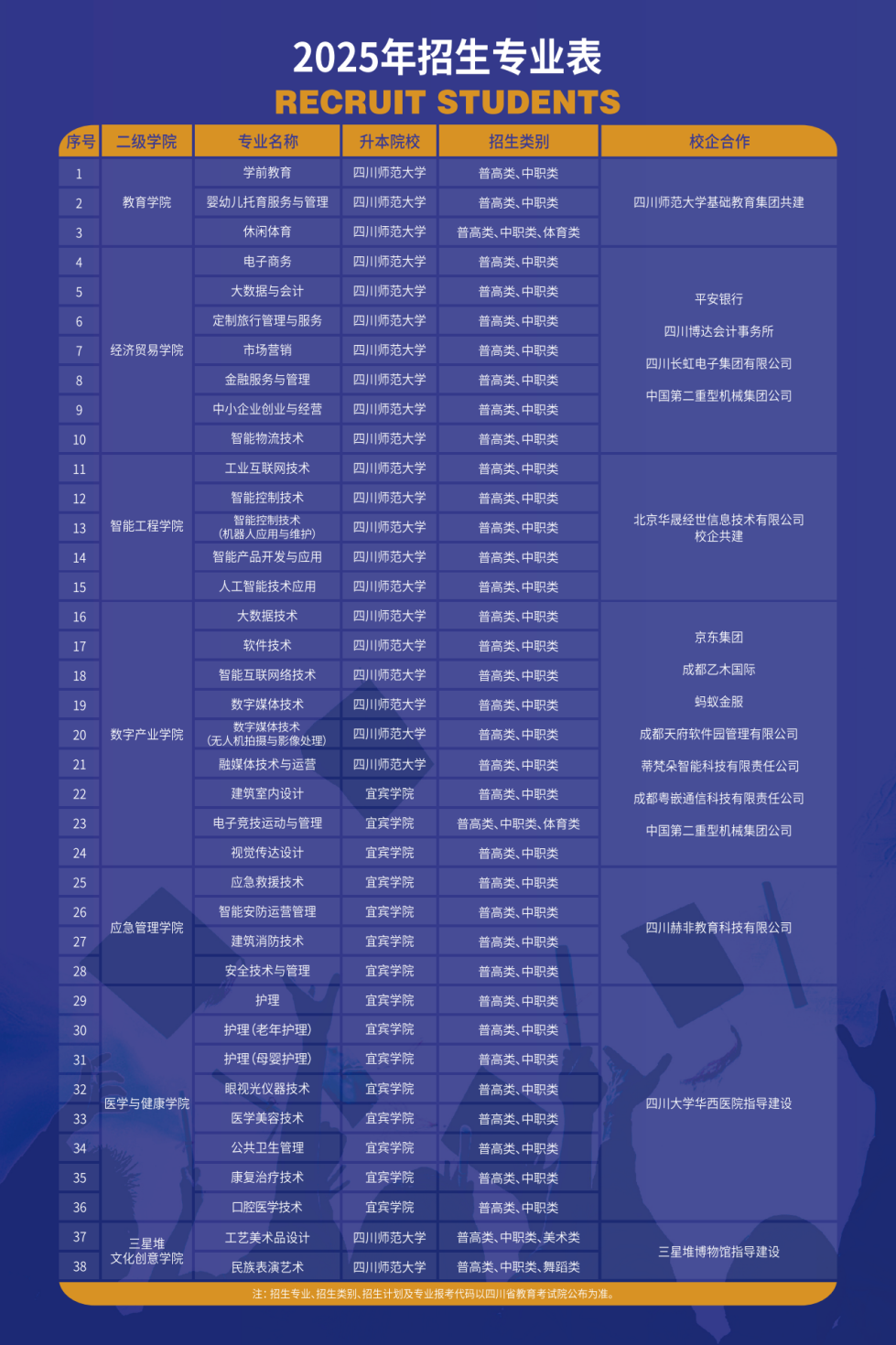 根据2025年四川省教育考试院招生录取工作安排,德阳科贸职业学院文化艺术类/艺体批招生专业,现面向全省考生火热征集,有关事宜公告如下: