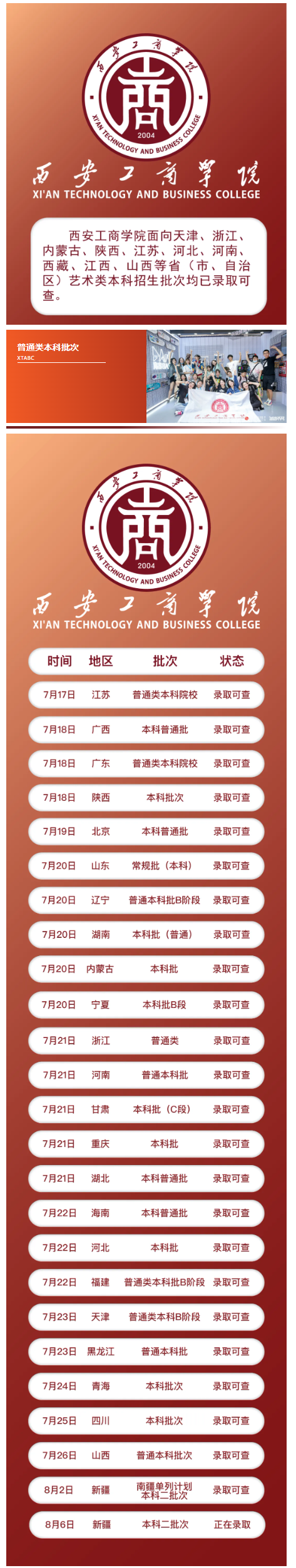 西安工商学院2025年录取进程Ⅸ(8月9日)