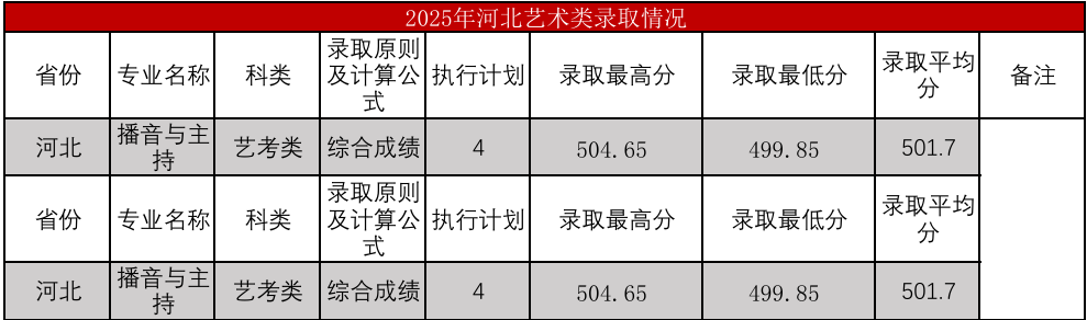 综合成绩=(0.55×高考文化课成绩/900+0.45×播音与主持类省级统考成绩/300)×500