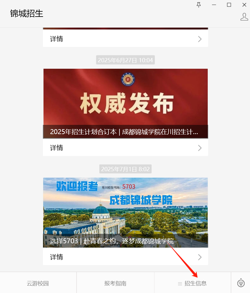 为便于广大考生、家长及时了解我校招生录取状态,我校2025年各省各批次录取结果将在官方公众号锦城招生发布