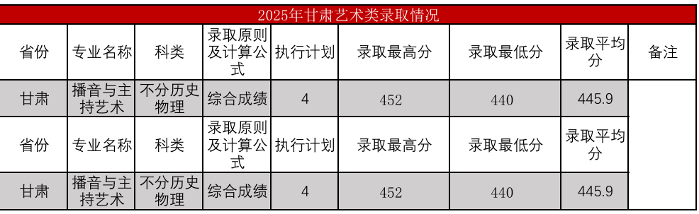 综合成绩=(0.55×高考文化课成绩/900+0.45×播音与主持类省级统考成绩/300)×500