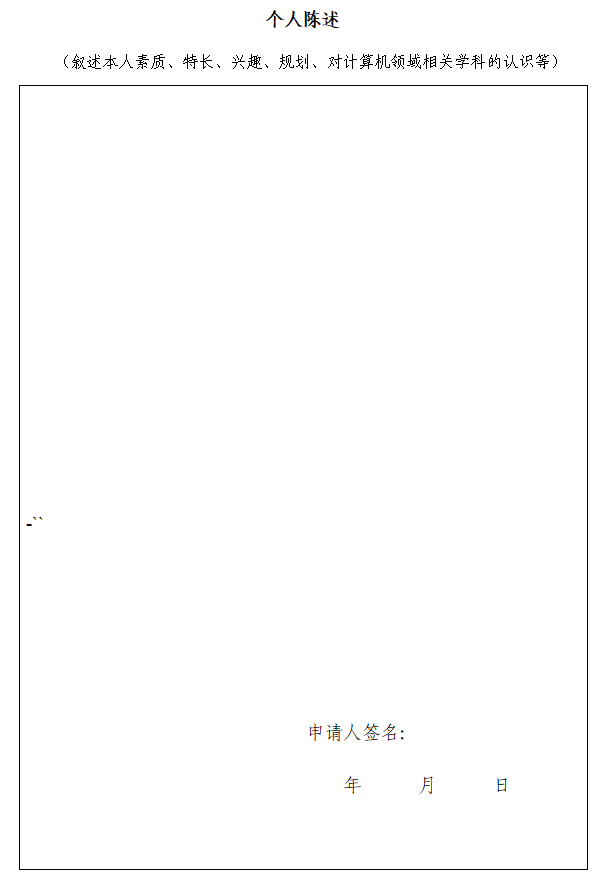 纸质申请提交:9月1日-9月2日9:00-19:00,将纸质申报表(纸质申报表见附表)、证明材料(包括竞赛获奖证书和高考成绩单复印件,原件备查)提交至计算机学院一楼大厅工作人员处。