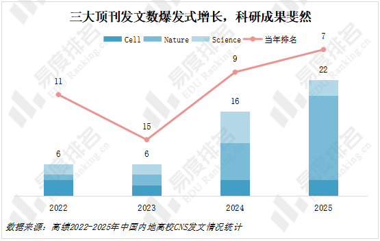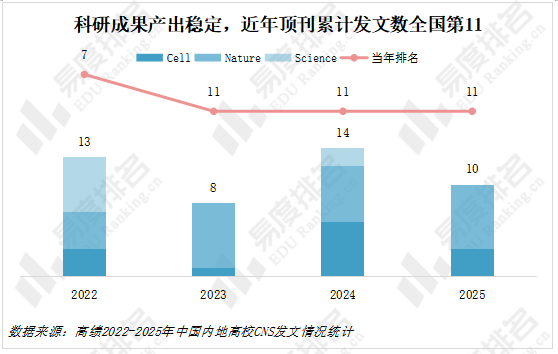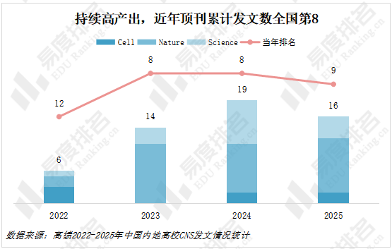 科研成果持续高产出,近年三大顶刊发文数全国第8