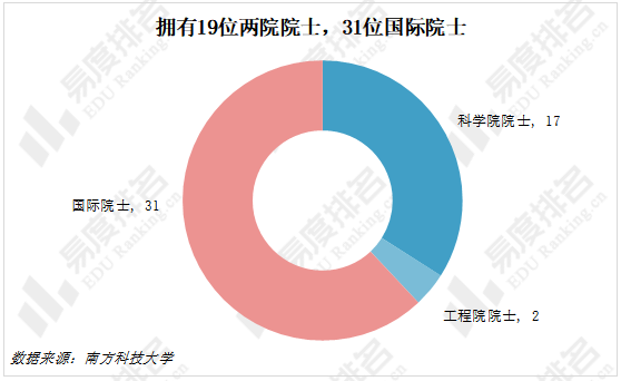 南方科技大学目前拥有50位院士,其中两院院士19位,国际院士31位,软科大学排名相近的电子科技大学仅有7位两院院士。院士是学科带头人,决定着学科未来发展方向和高度。