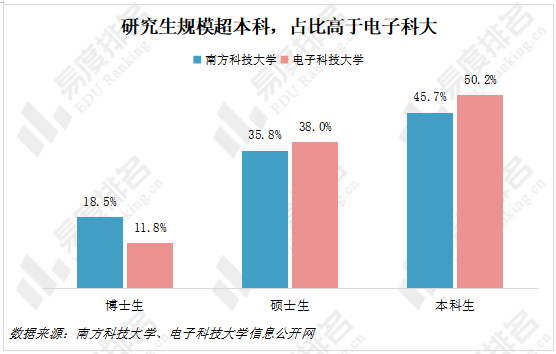 截至2024年10月,南方科技大学有全日制在校生11712位,其中研究生占比达到54.2%,超过本科生规模。而同水平的电子科技大学研究生占比为49.8%,尤其博士生占比差距更为明显。
