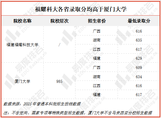 2025年2月学校获教育部批准正式成立,今年在广西、湖南、江西、福建4省份招收本科生,各省的录取分均高于厦门大学,尤其在福建省内的录取分分差更是达到了12分。一所成立不到一年的学校录取分数全方位碾压百年强校,真可谓是乱拳打死老师傅,历史悠久终究还是敌不过年富力强啊!