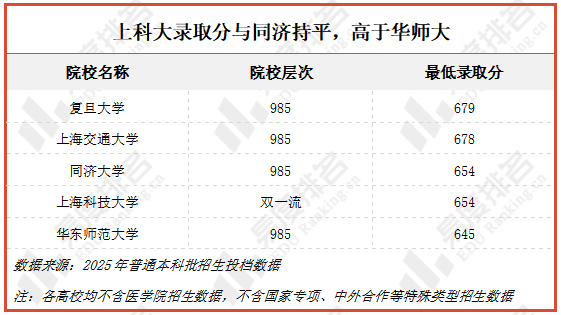 上海科技大学今年普通批只在安徽招生,其录取分数和同济大学持平,比华东师范大学还高9分,虽然只是双一流院校,但生源质量已是妥妥的985强校水平。