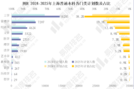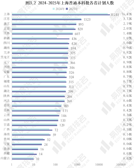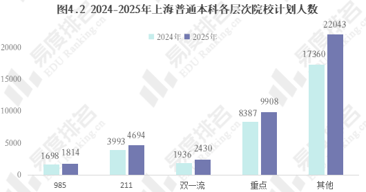 2025年高考在上海本科普通批计划招生4.09万人,较去年增加22.5%。今年上海市内高校计划招生3.12万人,较去年增加6700余人,市内高校招生名额占全国总计划的比例由73.31%升至76.41%。