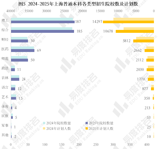 今年增加的招生名额主要来自理工类、综合类高校,其中理工类高校计划人数达到1.43万人,较去年增加2900余人;综合类高校计划人数达到1.07万人,较去年增加近2100人。这两类高校增加的招生名额占到全市增长名额的61%。